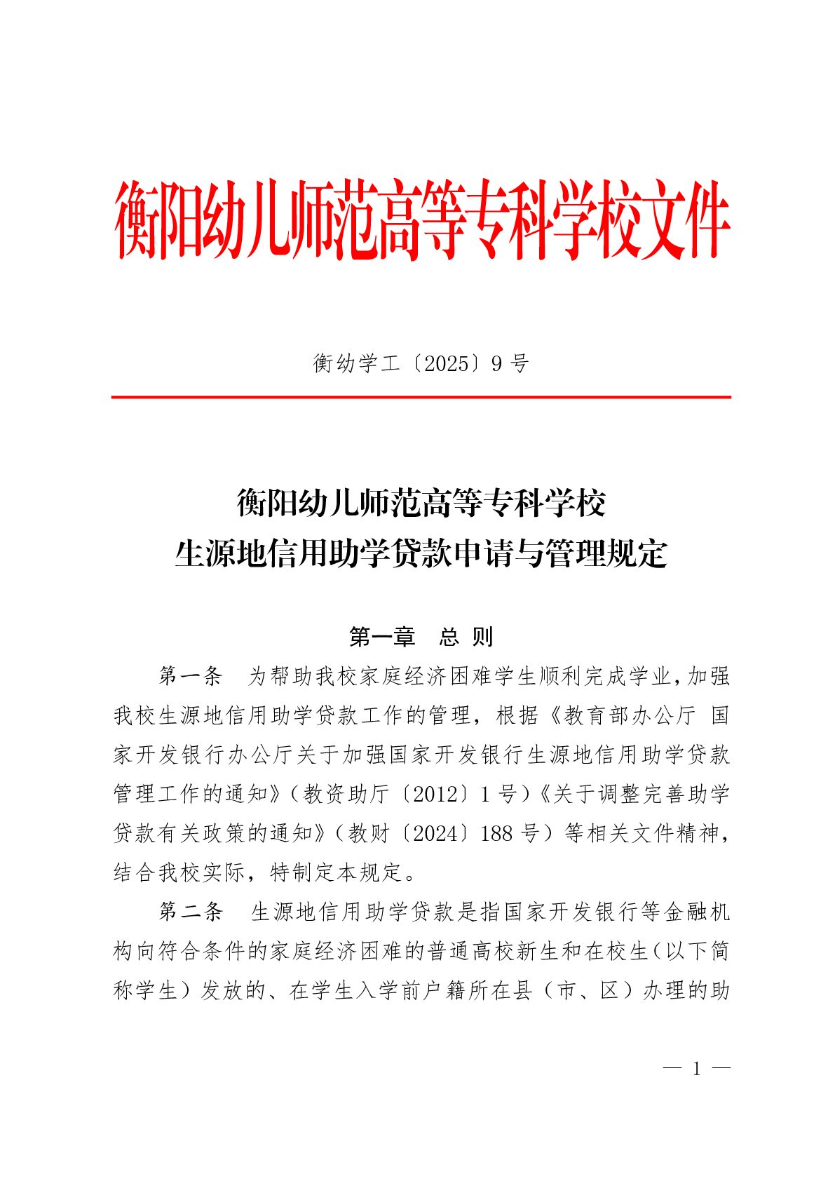 衡陽(yáng)幼兒師范高等??茖W(xué)校生源地信用助學(xué)貸款申請(qǐng)與管理規(guī)定