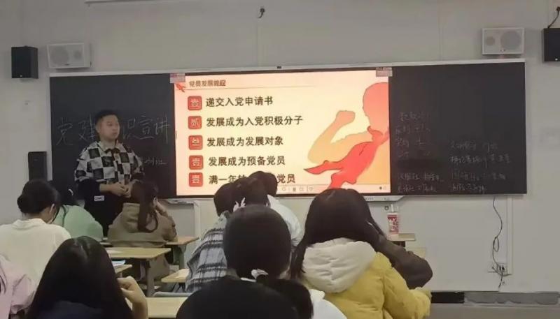 為學(xué)習(xí)貫徹習(xí)近平新時(shí)代中國特色社會(huì)主義思想、黨的二十大精神和全國高校思想政治工作會(huì)議精神,讓青年學(xué)生更深刻地認(rèn)識(shí)中國共產(chǎn)黨,積極向黨組織靠攏,2023年12月14日,數(shù)學(xué)與現(xiàn)代信息技術(shù)系學(xué)生黨支部開展了以“新生入黨啟蒙教育”為主題的知識(shí)宣講活動(dòng)。