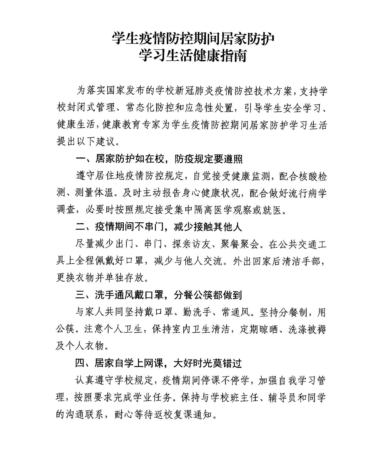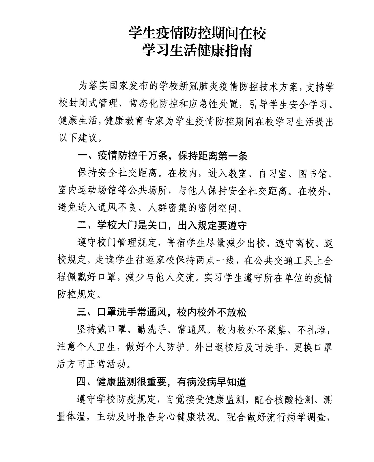 教育部辦公廳關(guān)于學(xué)生疫情防控期間學(xué)習(xí)生活健康指南的通知