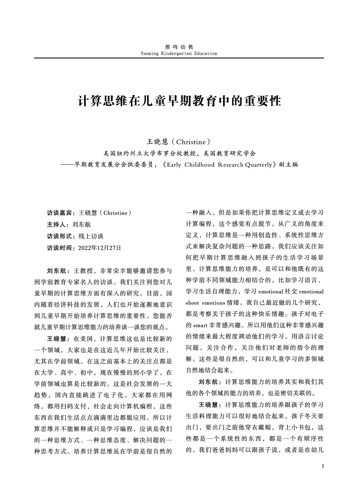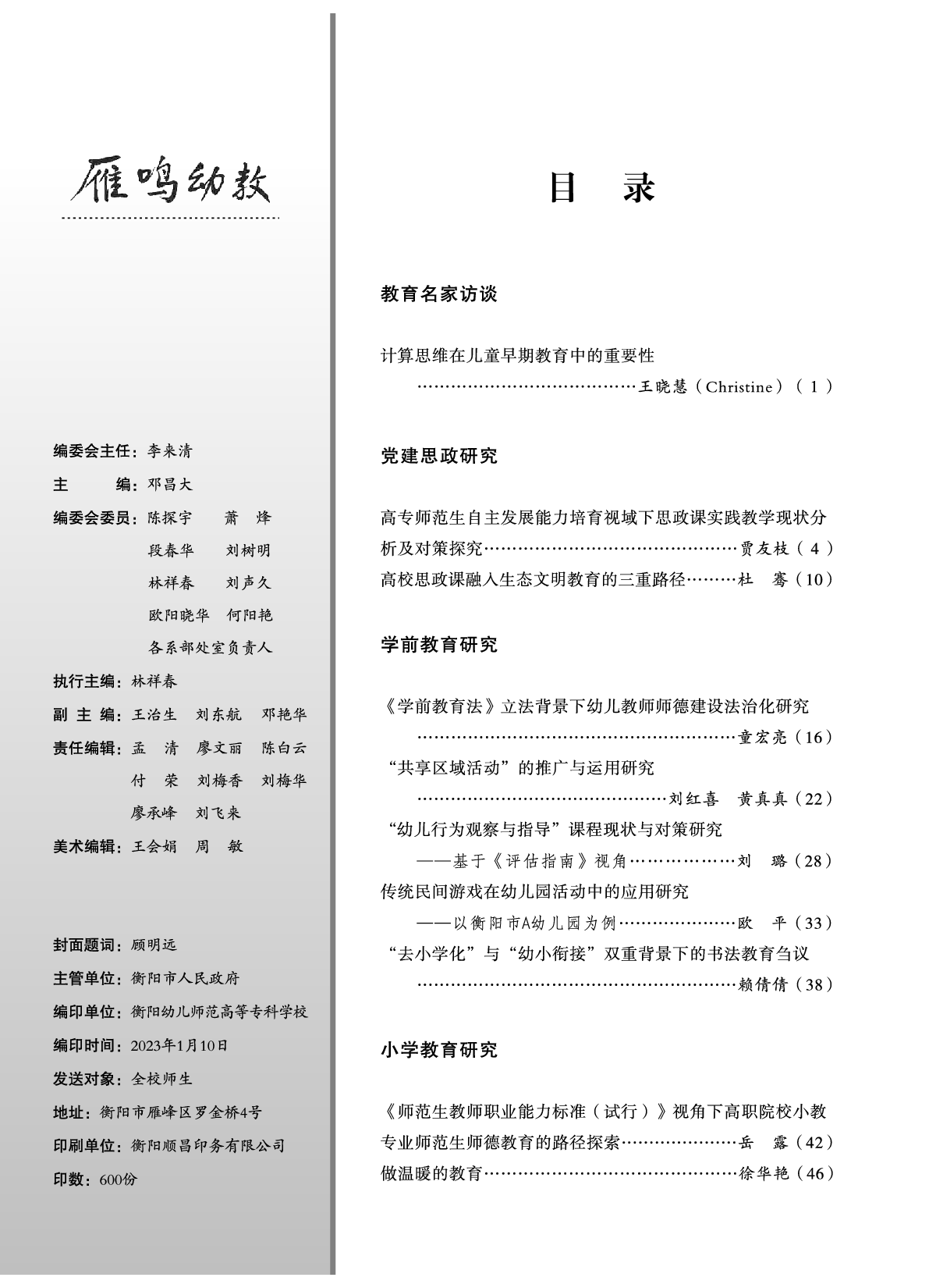 《雁鳴幼教》第1期