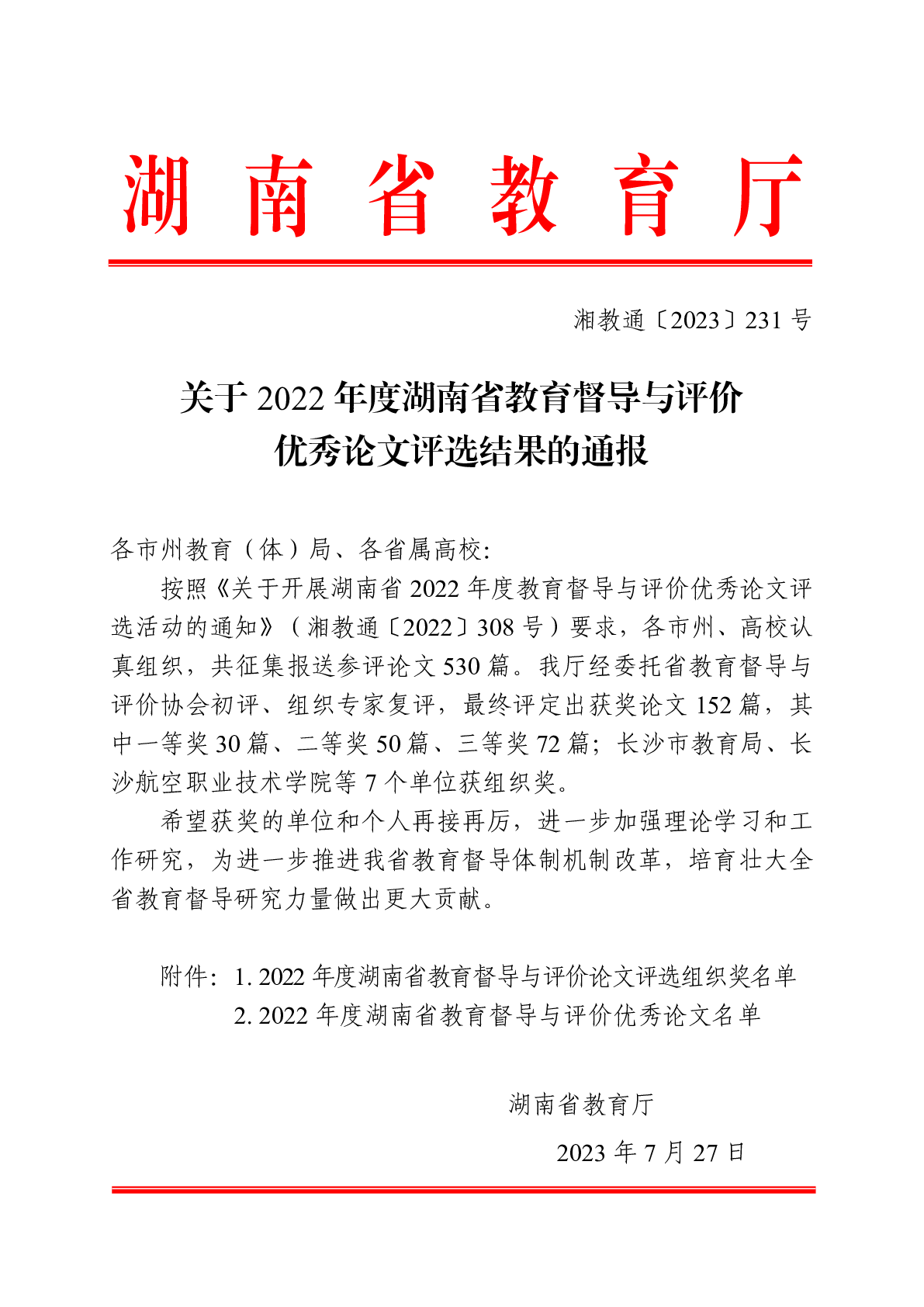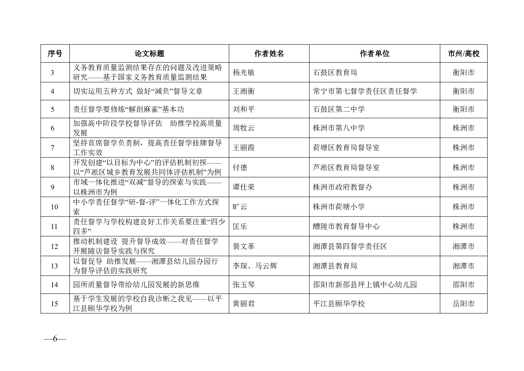 轉(zhuǎn)發(fā)關(guān)于2022年度湖南省教育督導(dǎo)與評(píng)價(jià)優(yōu)秀論文評(píng)選結(jié)果的通報(bào)