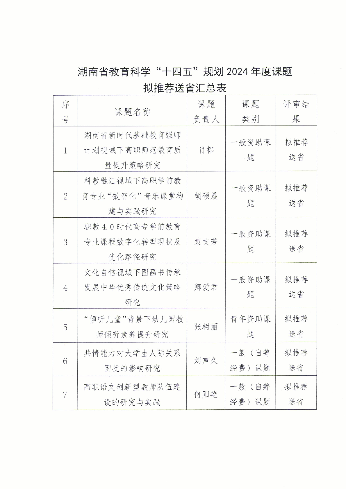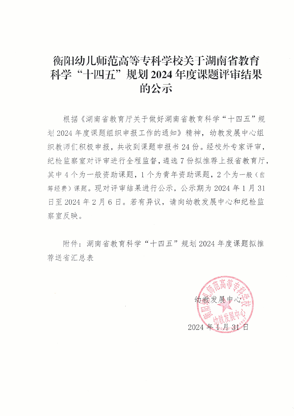 衡陽幼兒師范高等??茖W(xué)校關(guān)于湖南省教育科學(xué)“十四五”規(guī)劃2024年度課題評審果的公示