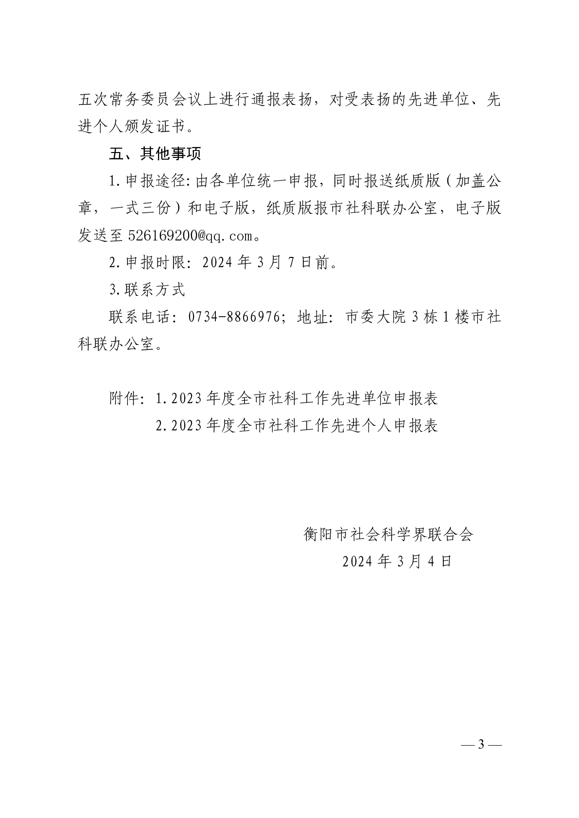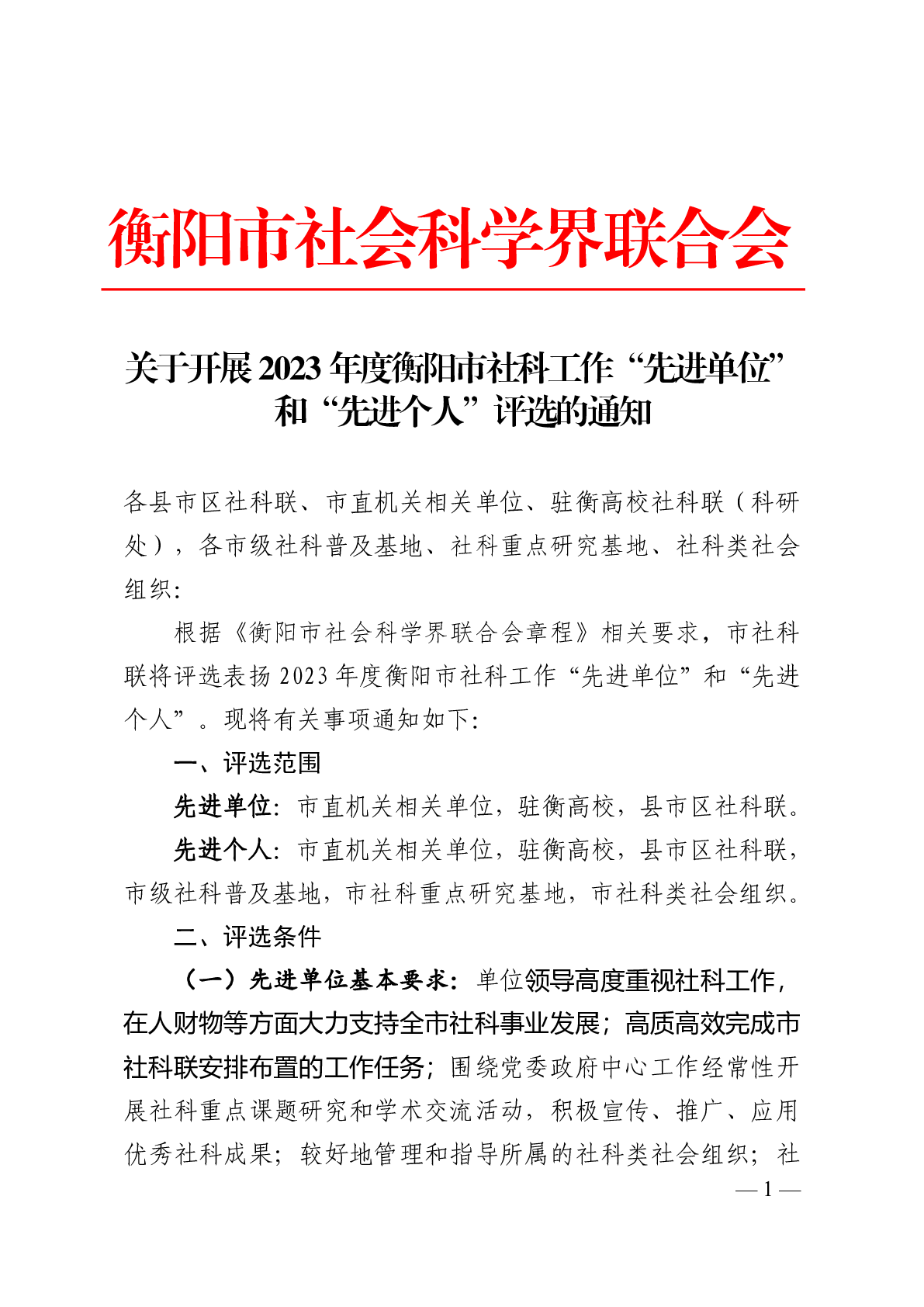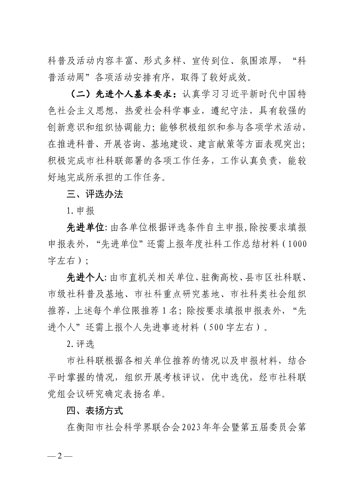 關于推薦2023年度衡陽市社科工作“先進單位”和“先進個人”的通知.docx