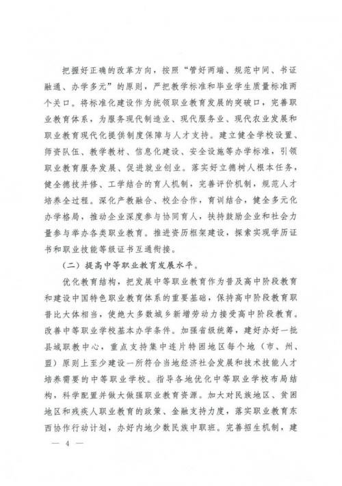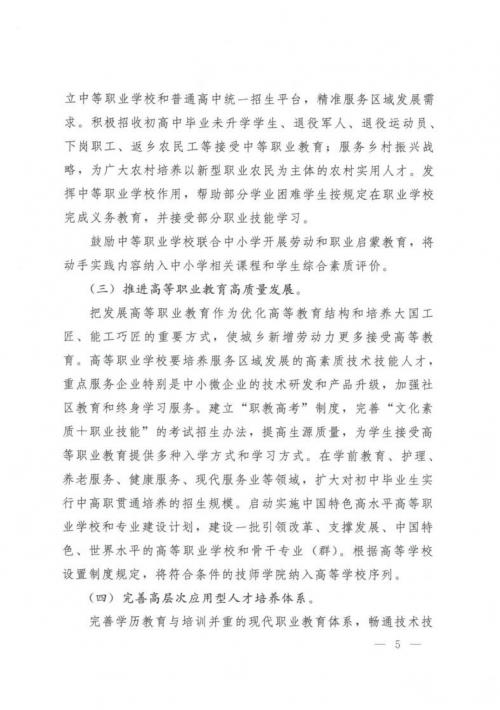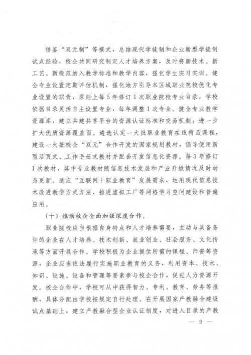關于深化現(xiàn)代職業(yè)教育體系建設改革的意見