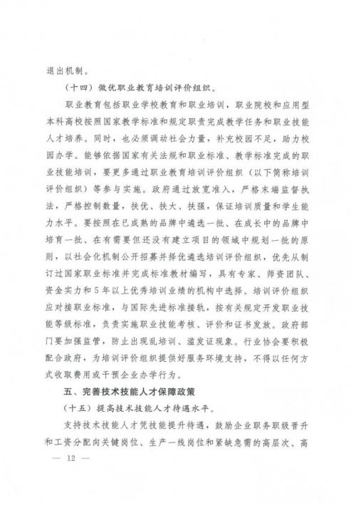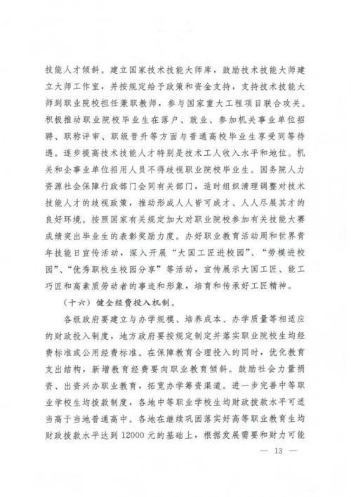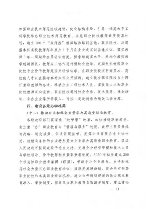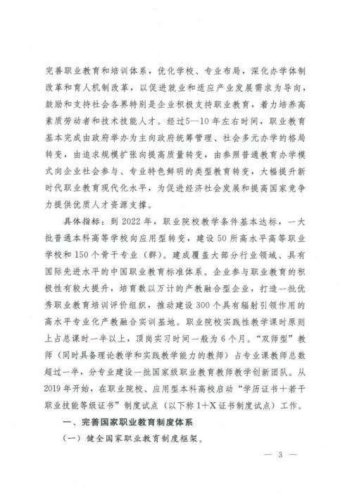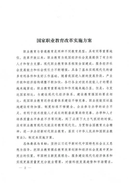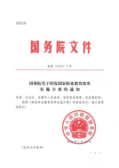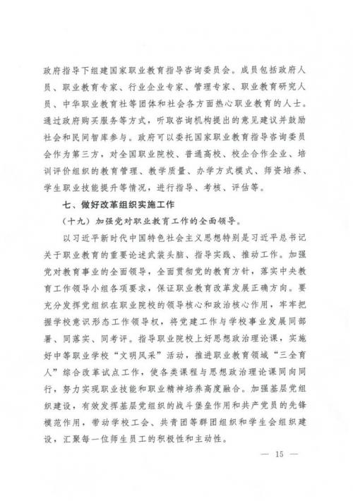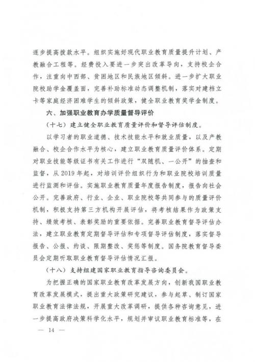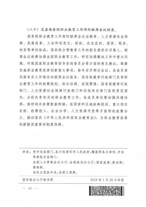 國務院關于印發(fā)國家職業(yè)教育改革實施方案的通知