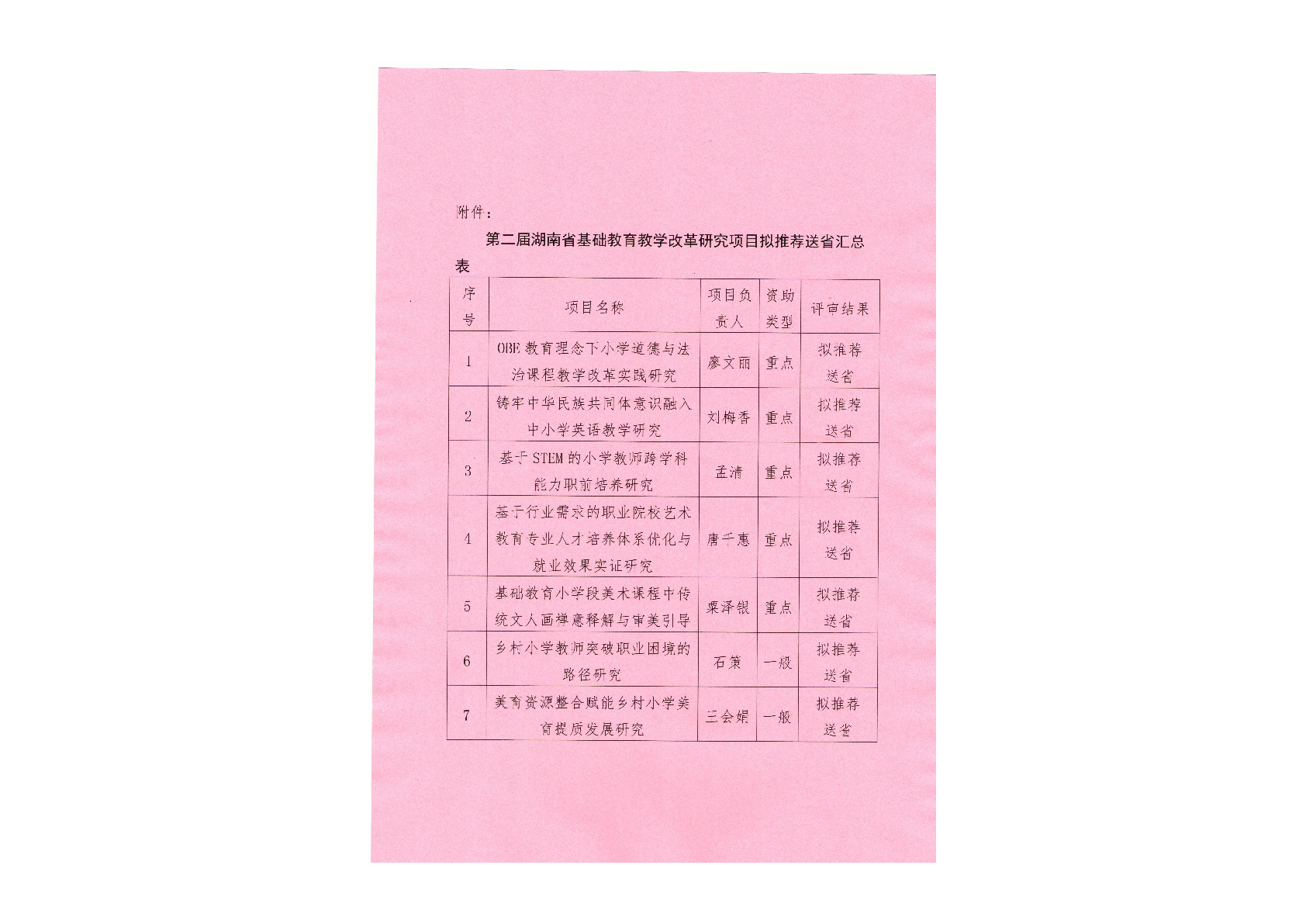 衡陽幼兒師范高等??茖W(xué)校關(guān)于第二屆湖南省基礎(chǔ)教育教學(xué)改革研究項目評審結(jié)果的公示.pdf