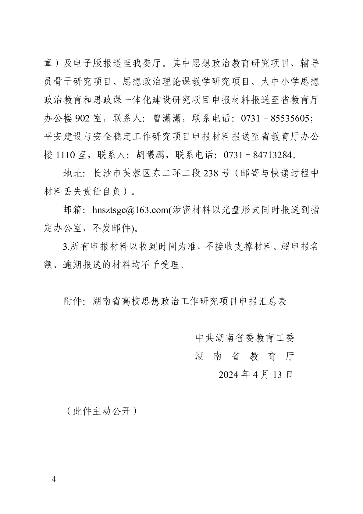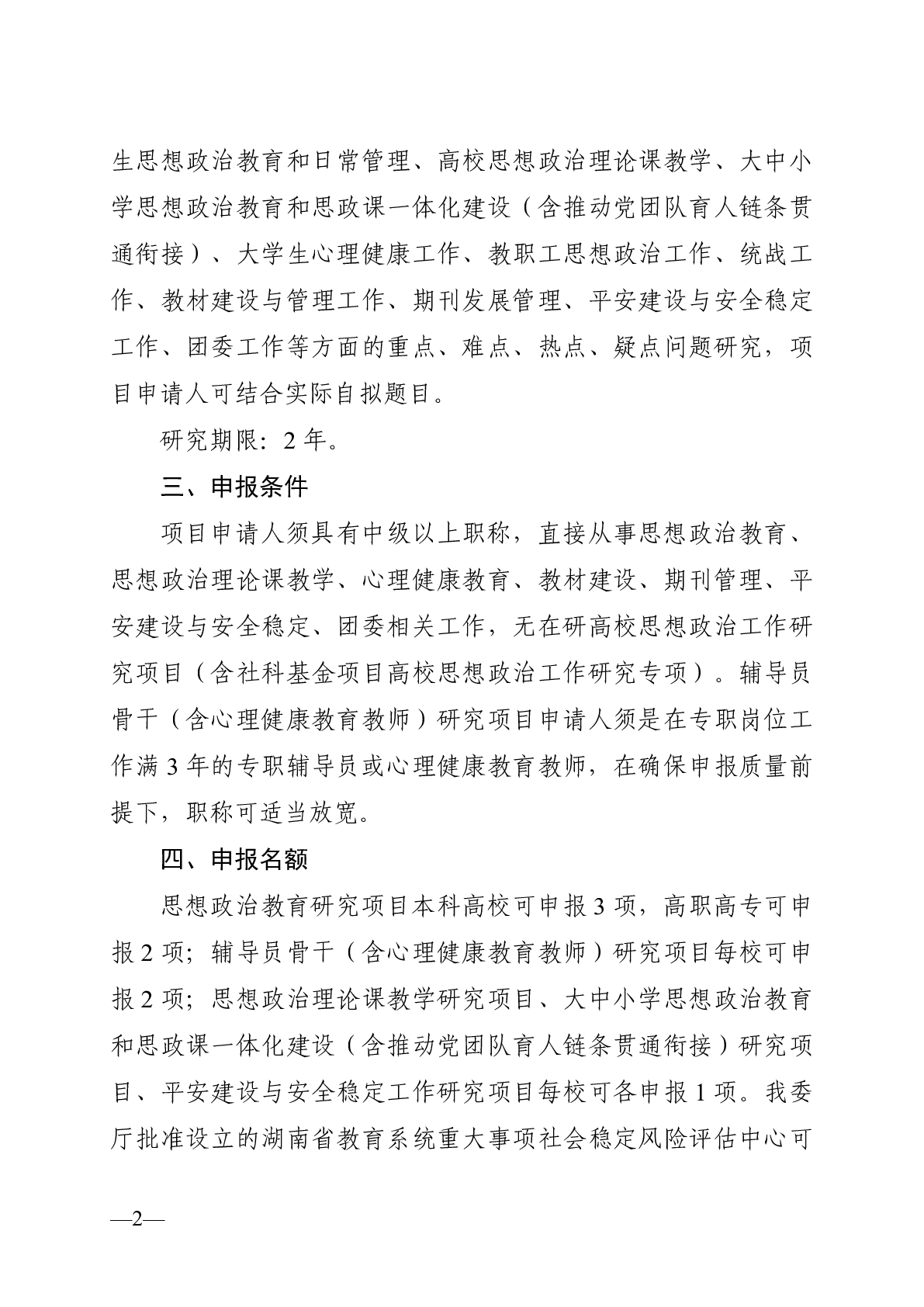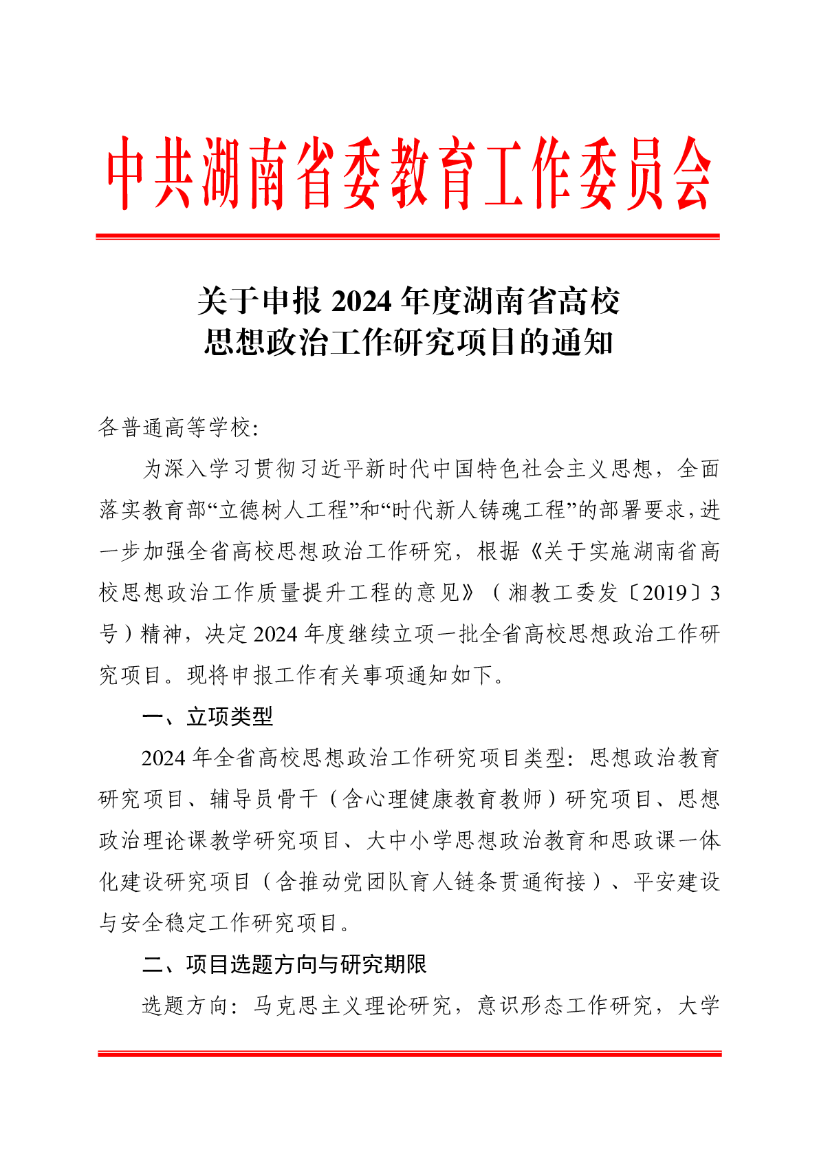 關(guān)于申報2024年度湖南省高校思想政治工作研究項目的通知