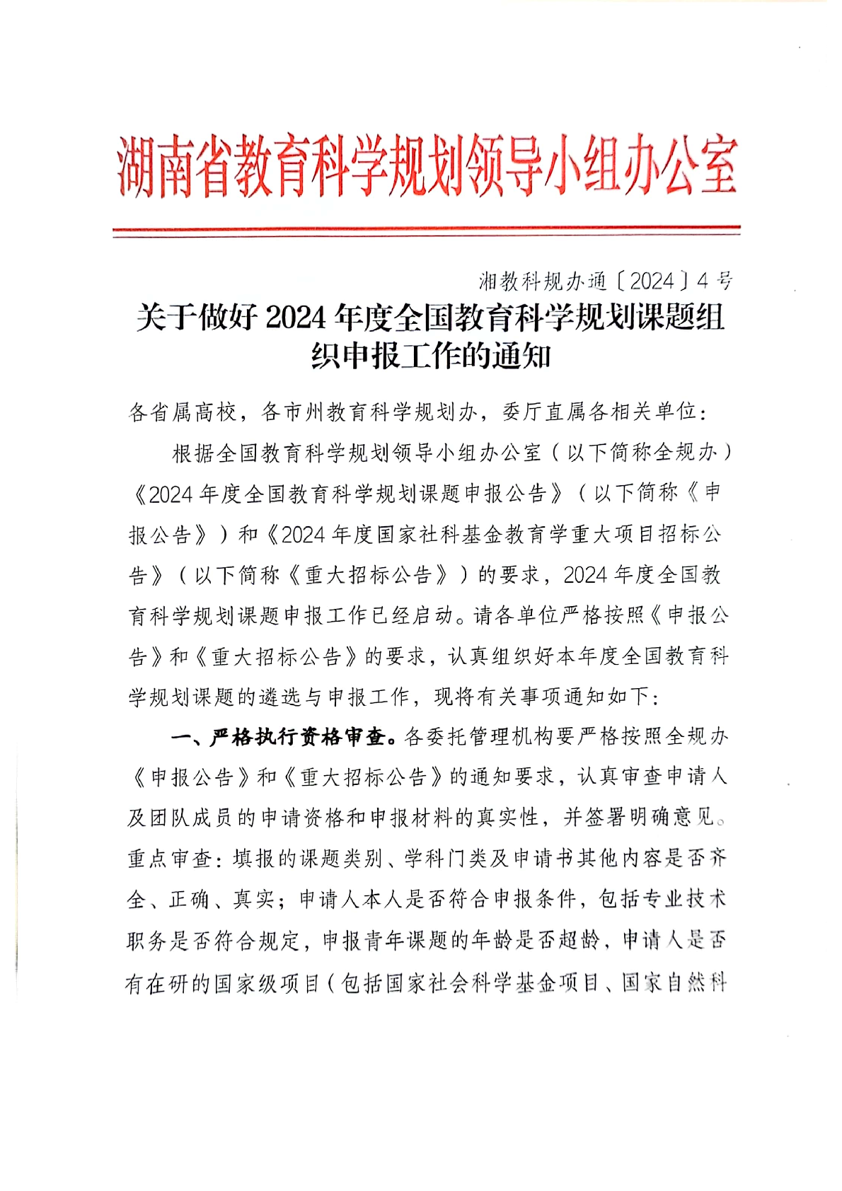 轉(zhuǎn)發(fā)關(guān)于做好2024年度全國教育科學(xué)規(guī)劃課題組織申報(bào)工作的通知
