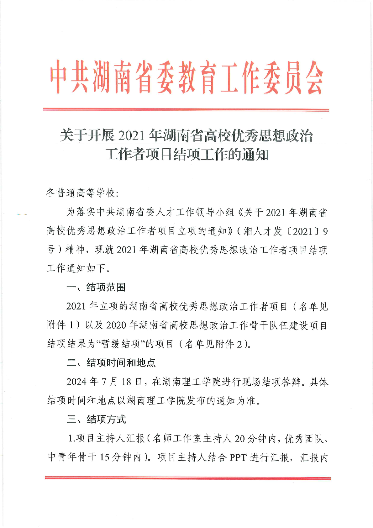 關于開展2021年湖南省高校優(yōu)秀思想政治工作者項目結項工作的通知