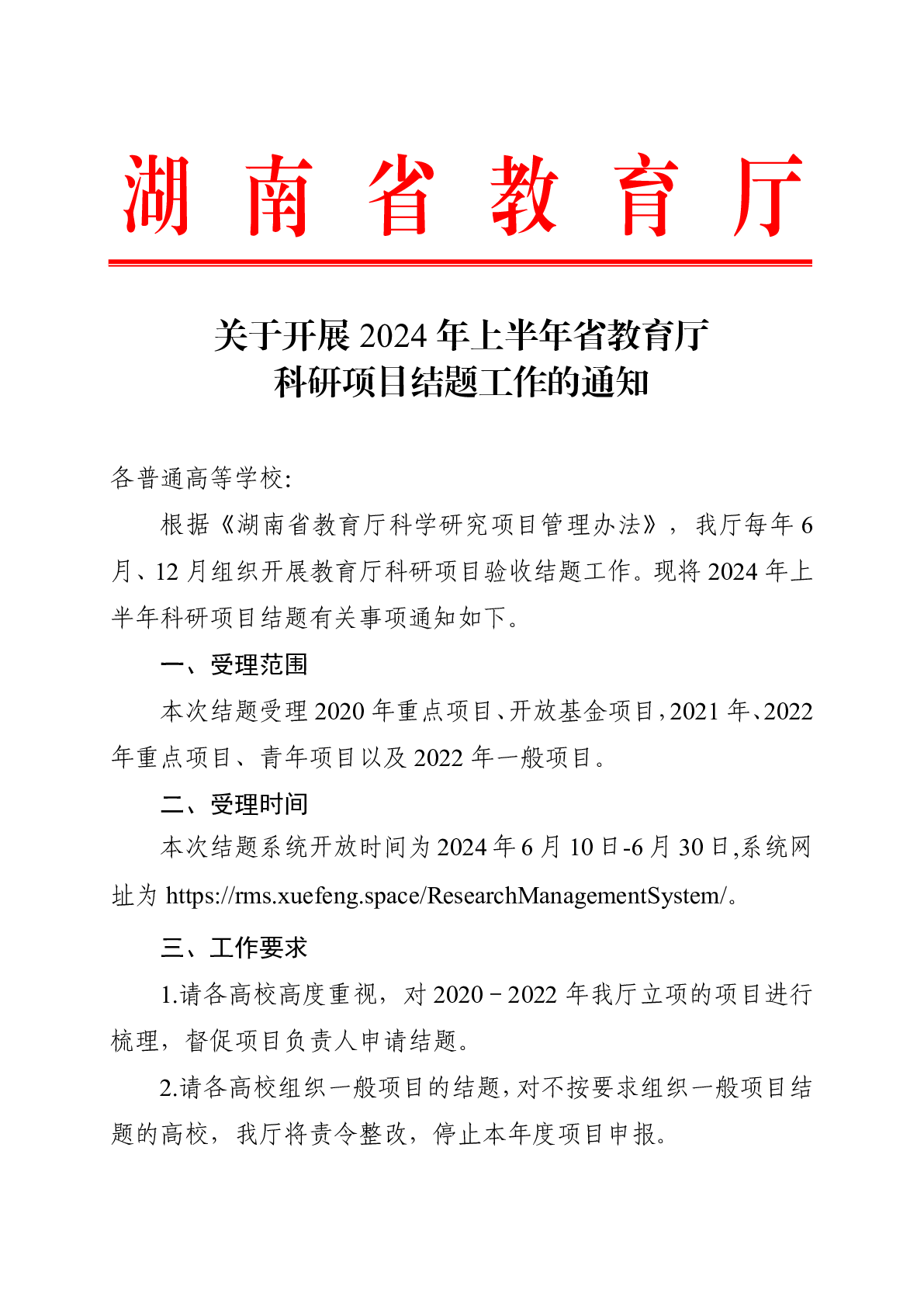 關于開展2024年上半年省教育廳科研項目結題工作的通知