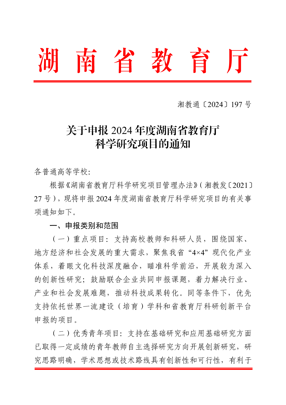 關(guān)于申報2024年度湖南省教育廳科學(xué)研究項目的通知.pdf