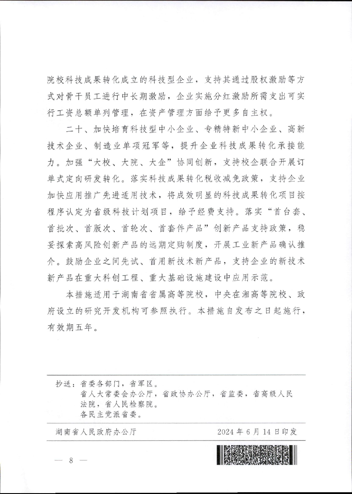 轉(zhuǎn)發(fā)湖南省人民政府辦公廳關(guān)于印發(fā)《湖南省加快高等院??萍汲晒D(zhuǎn)化的若干措施》的通知