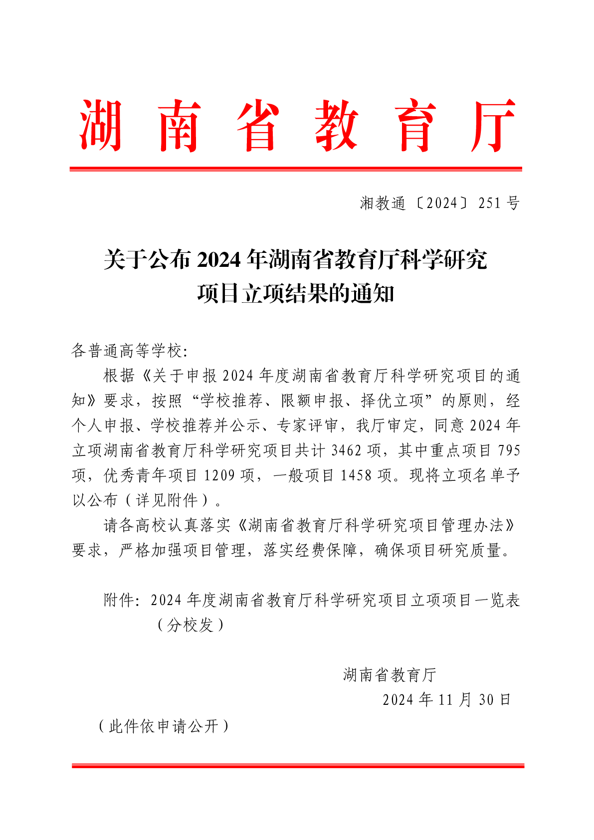 關(guān)于公布2024年湖南省教育廳科學研究項目立項結(jié)果的通知.pdf