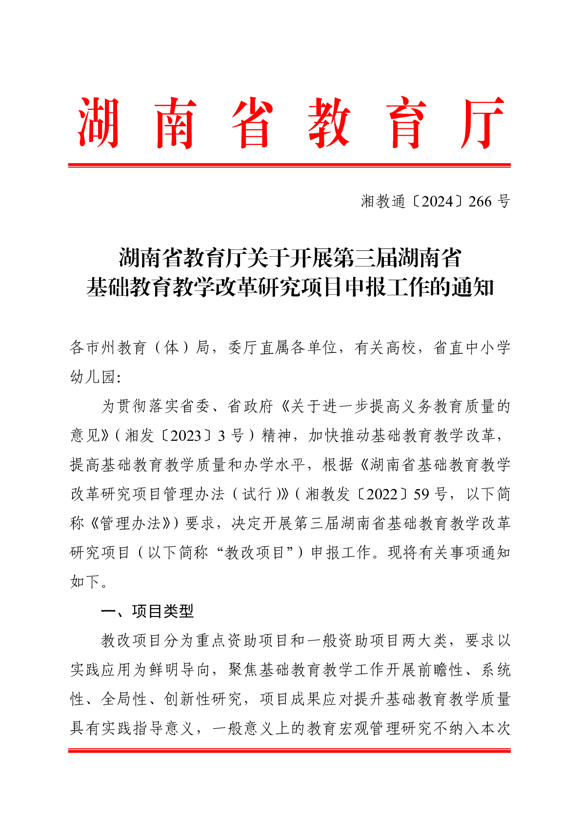 湖南省教育廳關(guān)于開展第三屆湖南省基礎(chǔ)教育教學(xué)改革研究項目申報工作的通知.pdf