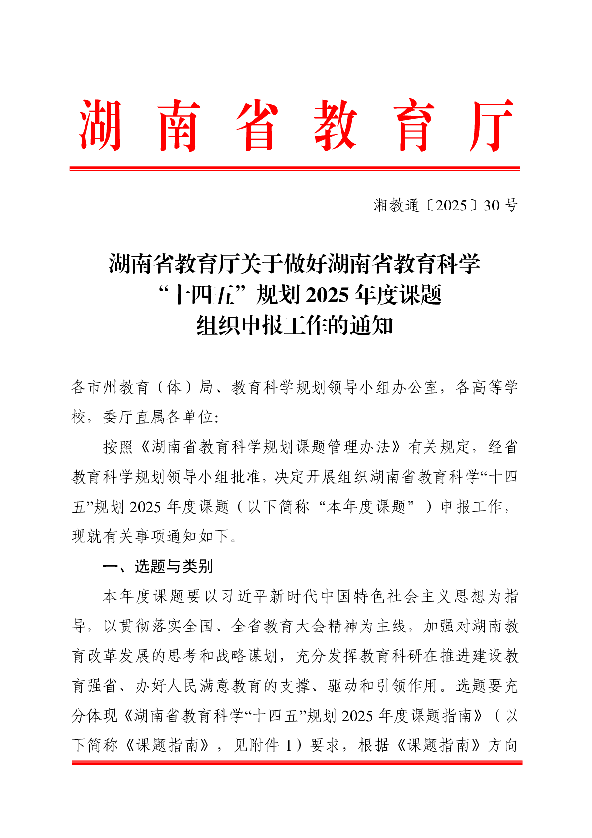 湖南省教育廳關(guān)于做好湖南省教育科學(xué)“十四五”規(guī)劃2025年度課題組織申報(bào)工作的通知.pdf