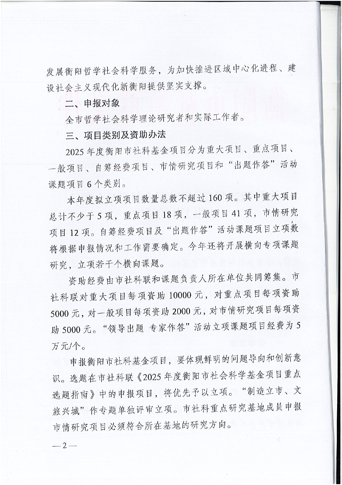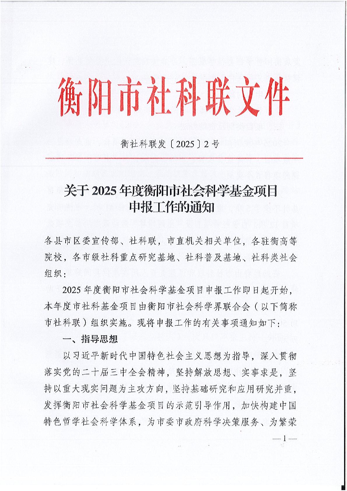 關(guān)于2025年度衡陽市社會科學(xué)基金項目申報工作的通知.pdf