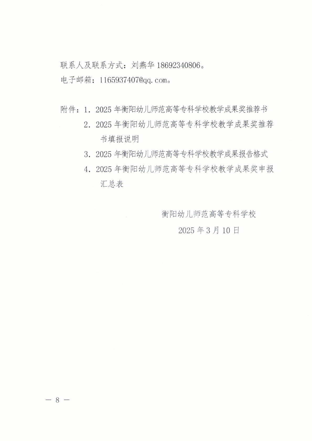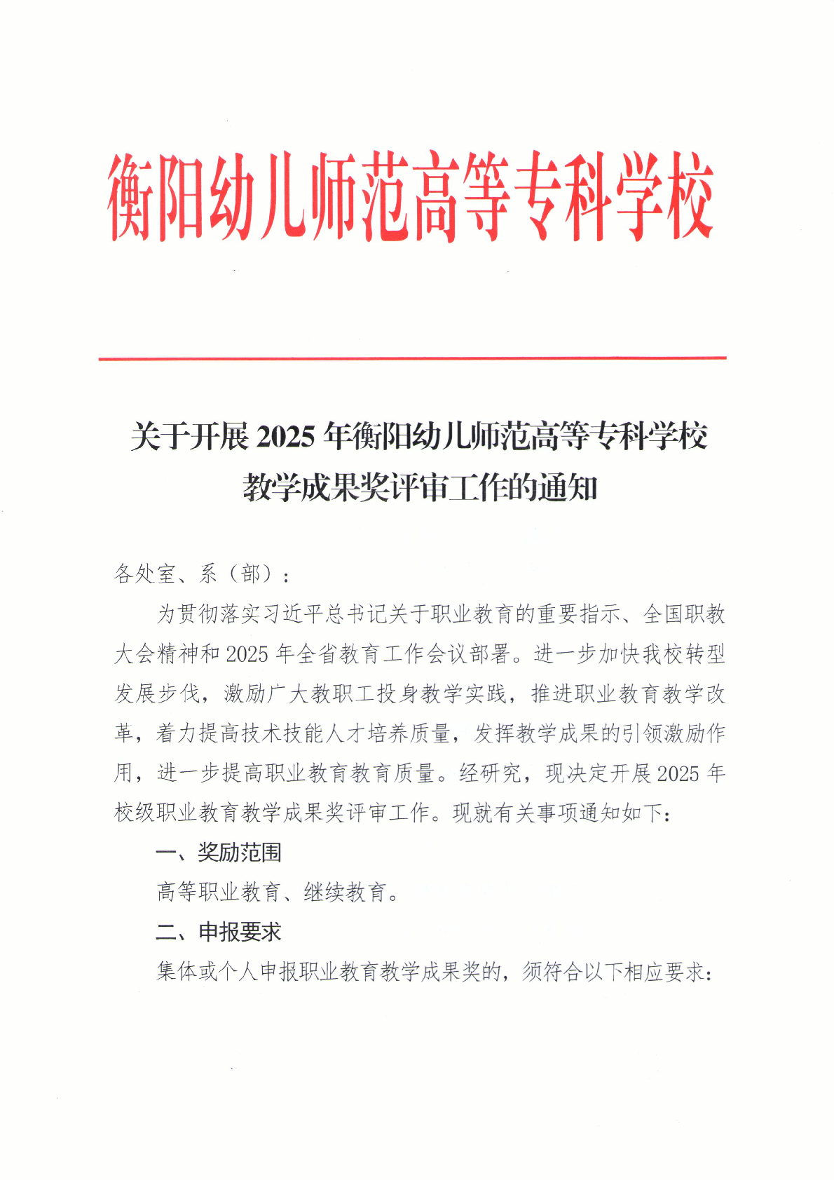 關(guān)于開(kāi)展2025年衡陽(yáng)幼兒師范高等專(zhuān)科學(xué)校教學(xué)成果獎(jiǎng)評(píng)審工作的通知