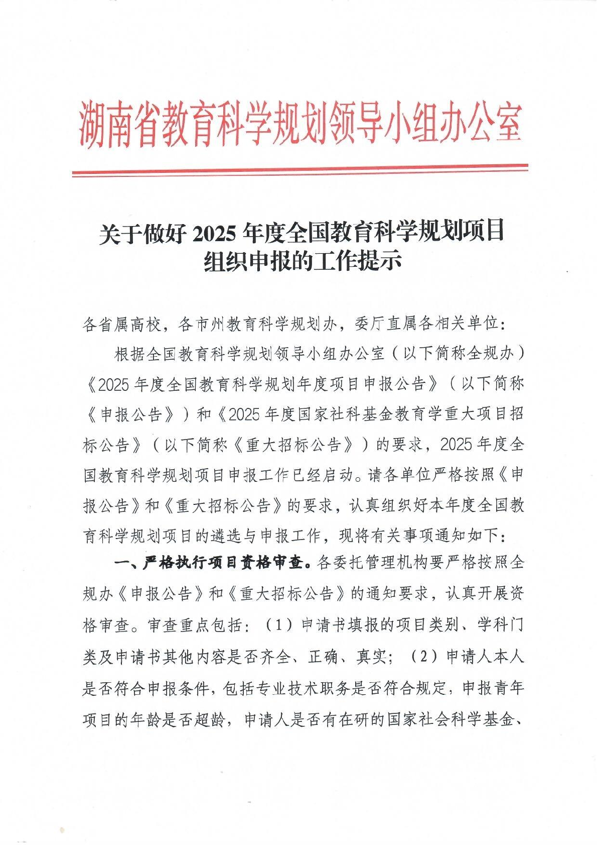 轉(zhuǎn)發(fā)《關(guān)于做好2025年度全國教育科學規(guī)劃項目組織申報的工作提示》
