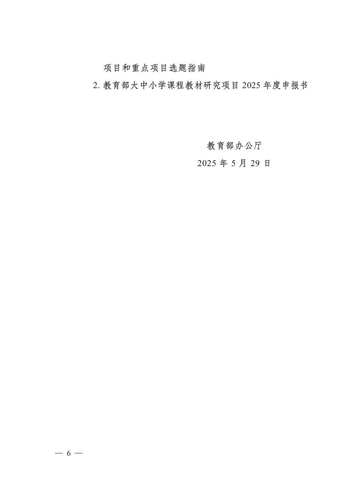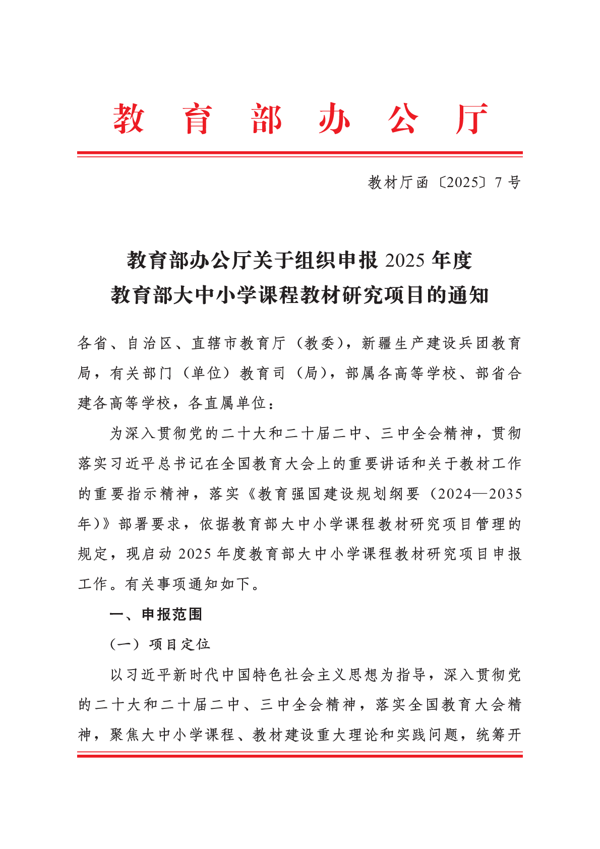 教材廳函〔2025〕7號(hào)+教育部辦公廳關(guān)于組織申報(bào)2025年度教育部大中小學(xué)課程教材研究項(xiàng)目的通知