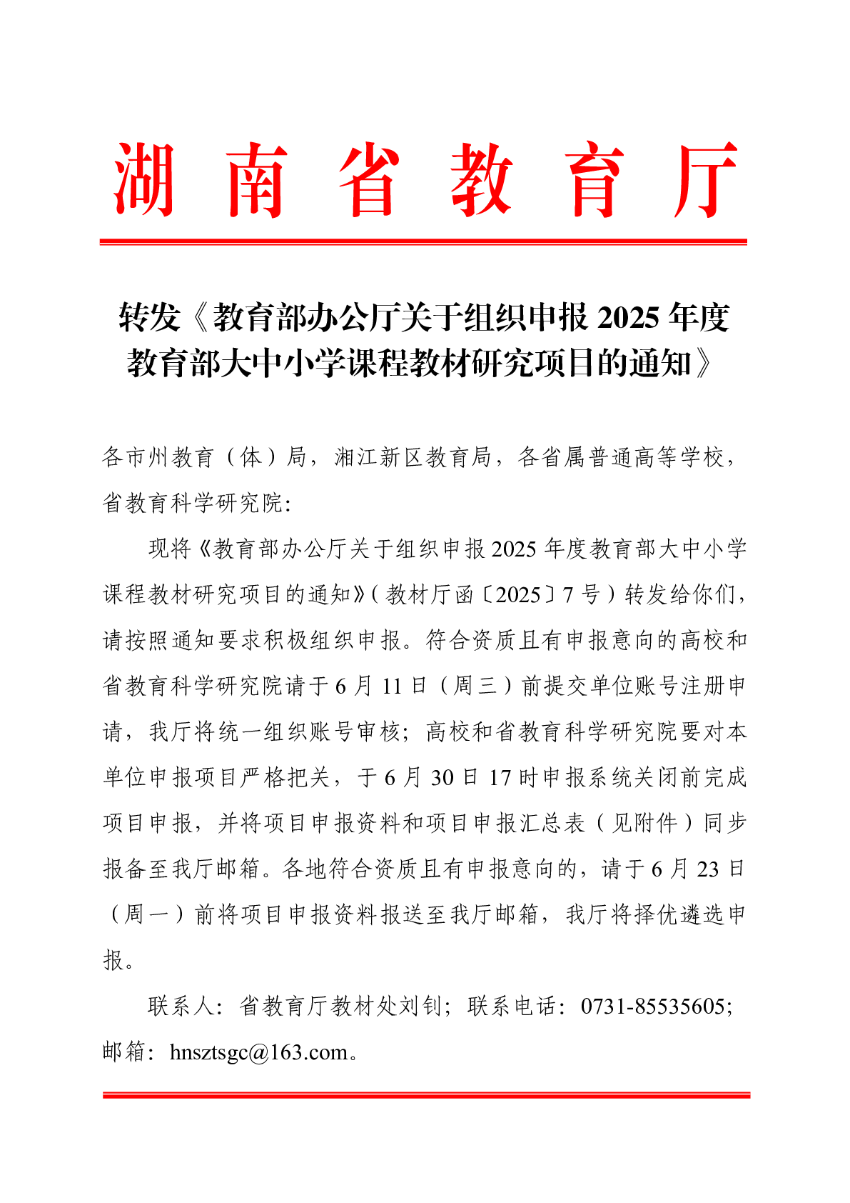 轉(zhuǎn)發(fā)教育部辦公廳關(guān)于組織申報(bào)2025年度教育部大中小學(xué)課程教材研究項(xiàng)目的通知.pdf