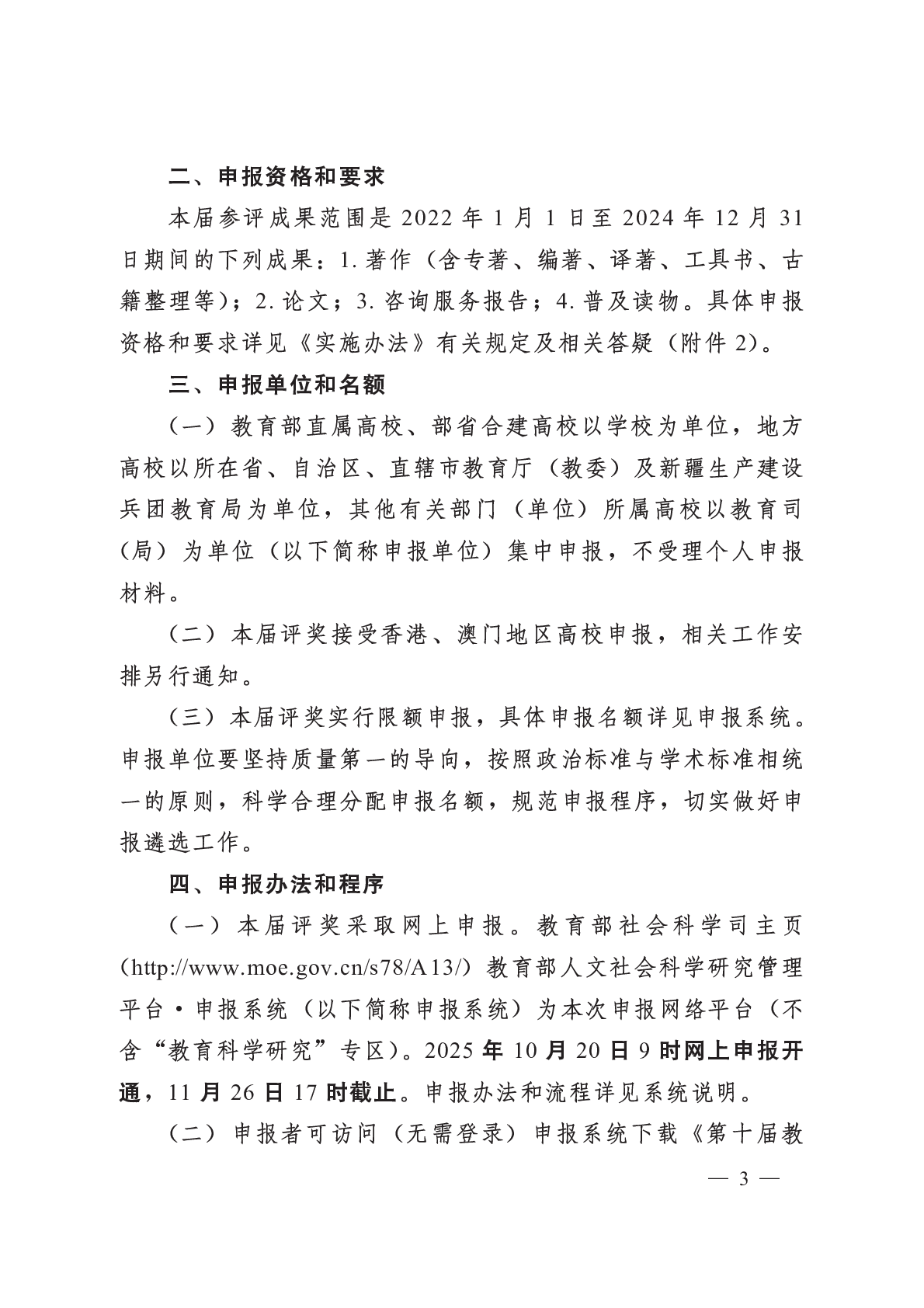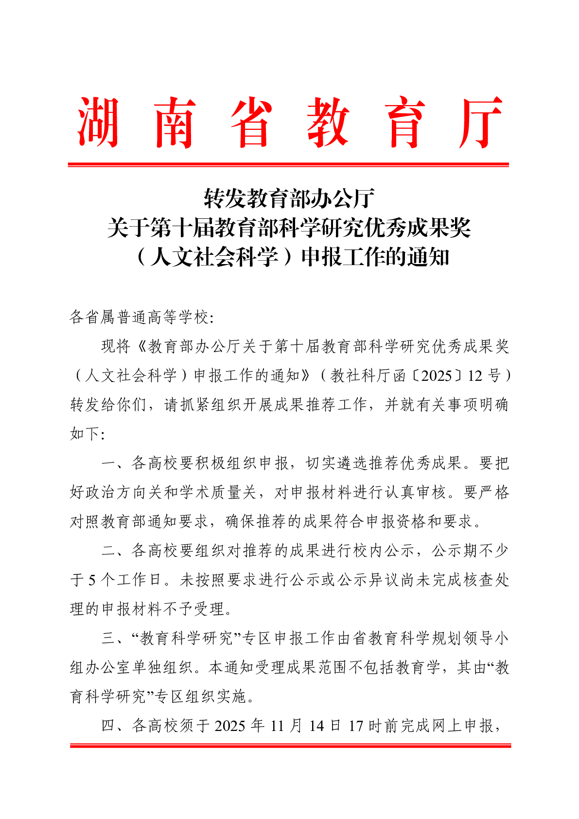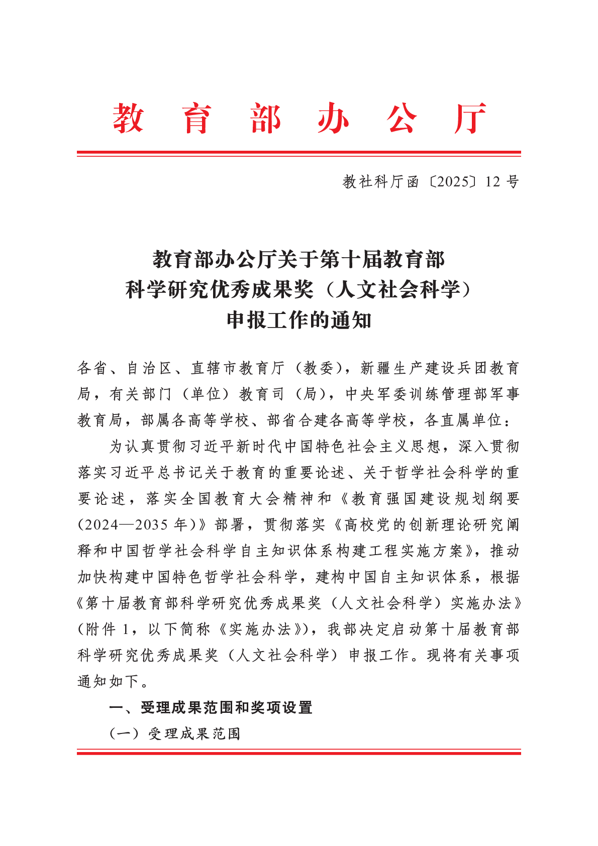 教社科廳函〔2025〕12號 教育部辦公廳關于第十屆教育部科學研究優(yōu)秀成果獎(人文社會科學)申報工作的通知.pdf