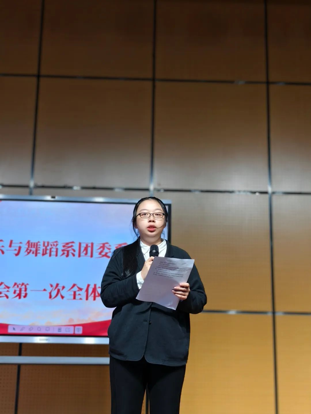 根據(jù)會(huì)議議程,周玉辰老師宣布音樂與舞蹈系第一屆學(xué)生會(huì)干部名單以及頒布學(xué)生干部聘書,同時(shí)周玉辰老師對(duì)學(xué)生會(huì)構(gòu)成情況進(jìn)行概述和對(duì)學(xué)生們提出希望和鼓勵(lì)。