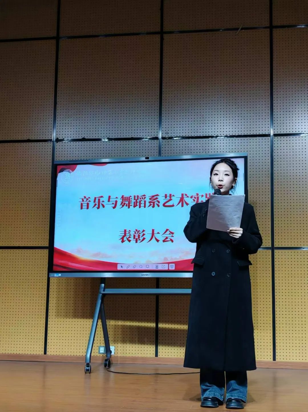 大會即將進入尾聲,系部書記任姜鈴為本次表彰大會總結(jié)發(fā)言,她說道:“音舞系是一個新成立不久的系部,雖然很多事物都是從頭開始,但我們的同學們都已展現(xiàn)出勃勃的生機,希望在未來的日子里,同學們能夠向站在臺上的學姐學長們學習,多參加實踐活動,多出去走走,有些知識并不是在琴房里就能學會的”。