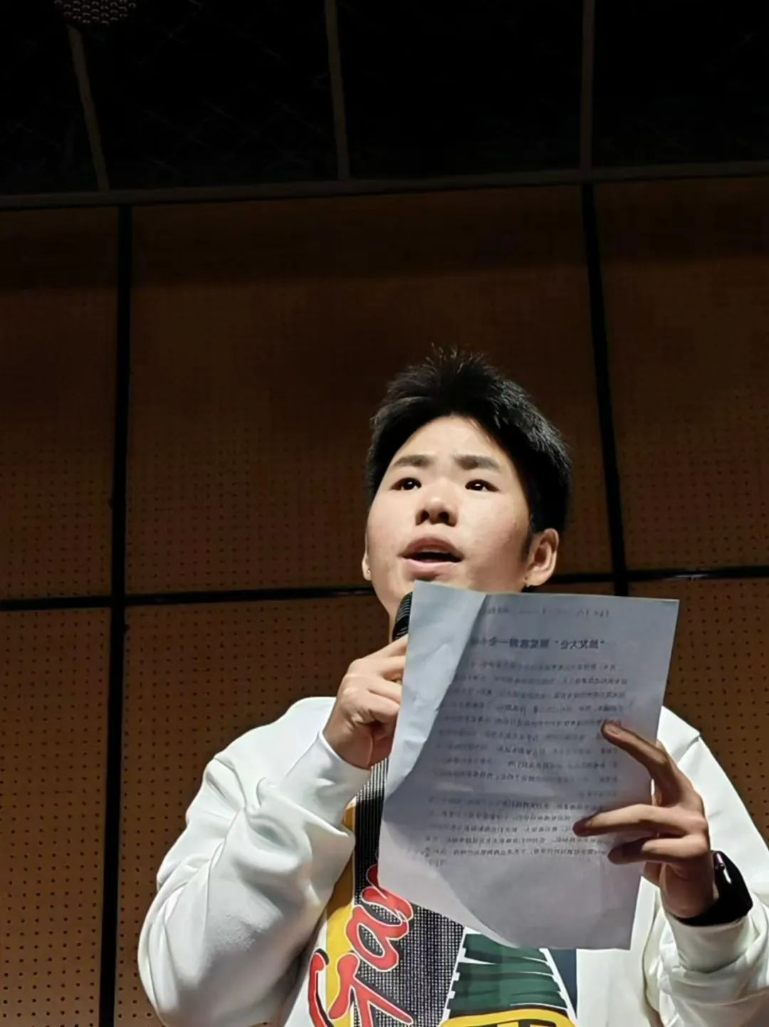 來自音樂表演2201班的演員代表唐晉發(fā)言道:“在本次表演中,他飾演的角色是“賀恕”,此角色在“沙子會”的基礎上發(fā)起成立了革命團體“心社”。“心社”以“改造自己和改造社會”為宗旨,推動了新文化,新思想,和馬克思主義在衡陽的傳播。只有讓紅色文化代代相傳,我們才能深知,今天的平凡與幸福是多么的來之不易,是先輩們用怎樣的代價換來!所以紅色文化的傳承和弘揚,是我們每個人的使命與責任”!