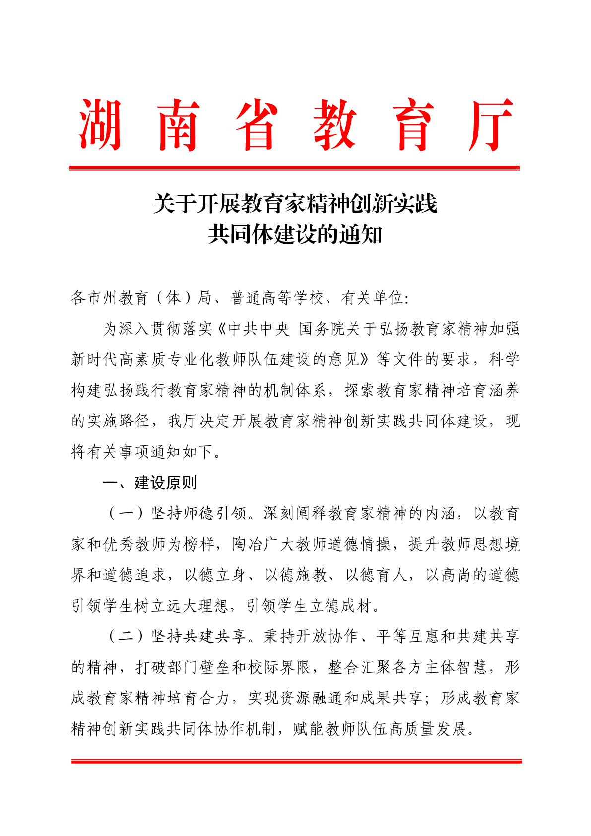 關(guān)于開展教育家精神創(chuàng)新實踐共同體建設(shè)的通知