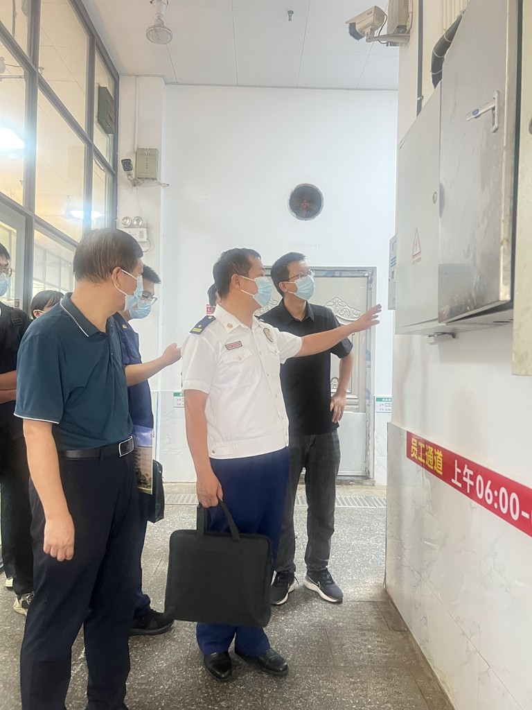 督導(dǎo)組通過座談、查閱資料、現(xiàn)場實(shí)地查看等方式督查學(xué)校安全工作。首先在行政會議室查閱學(xué)校安全隱患自查自糾情況及相關(guān)臺賬資料,對學(xué)校安全隱患排查工作扎實(shí)、資料齊全予以充分肯定。隨后現(xiàn)場查看校園在建的13#、15#宿舍,食堂和圖書館等重點(diǎn)場所,針對學(xué)校的安全管理工作提出了專業(yè)的指導(dǎo)意見和建議。